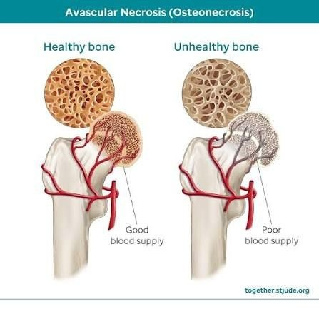 - Avascular Necrosis – Reduced blood supply to the hip bone, causing deterioration.